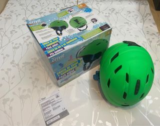 Casco de esquí y snowboard Crivit para niños. - Color verde brillante. - Talla S. 54-56 cm - Diseño con ventilación. Nuevo no se ha llegado a estrenar.