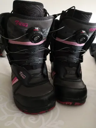 Conjunto de equipo para snowboard de la marca - Botas de snowboard Vans talla 36 - Casco de snowboard M(52-55cm) - Tabla Lamar-Altura 1.55-1.60cm -Botas Y Casco como nuevos, tabla bien conservada salvo cantos a Encerar y tratar.