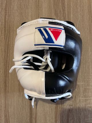 Casco de boxeo de la marca Winning, con un diseño bicolor. - Combinación de colores blanco y negro. - Cierre con cordones. -Talla única -Sin estrenar -Precio NO negociable
