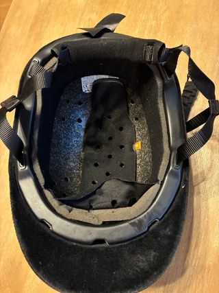 Casco de equitación de la marca Fouganza, talla 56 cm. Es de color negro y está hecho de terciopelo. Se encuentra en buen estado. - Marca: Fouganza - Talla: 56 cm - Material: Terciopelo - Color: Negro