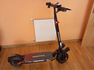 NUEVO (21 kms) Patinete eléctrico UrbanGlide E-CROSS PRO BOOST con un diseño robusto y moderno. Velocidad máxima 25km/h. Autonomía hasta 60 km. Potencia de motor 600w-800w x 2. Dos motores. Frenos trasero y delantero. Tres velocidades. Se regala casco. PRECIO REAL: 749 € • Plataforma antideslizante. • Doble faro delantero. • Manillar ajustable. • Suspensión delantera y trasera. • Intermitentes y luces laterales