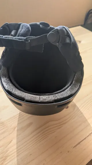 Casco de esquí de la marca Decathlon en color negro. Diseñado para ofrecer protección y comodidad. Le falta la goma de atrás. - Diseño en color negro. - Marca Decathlon.