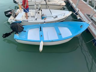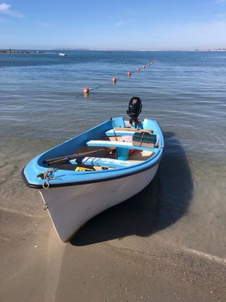 Barca de pesca con motor fueraborda. - Casco de fibra de vidrio. - Color azul y blanco. - Incluye motor Suzuki de cuatro tiempos y 6 cv funciona perfectamente. -incluye un remolque de mano (no apto para carretera) para meter la barca y sacarla del agua. -Incluye funda para la barca y para el motor. -Incluye 3 cañeros para pesca -Tiene matricula y papeles