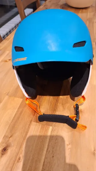 Casco de esquí junior de la marca CÉBÉ - Color azul brillante. - Acolchado interior. - Cintas de ajuste naranjas.