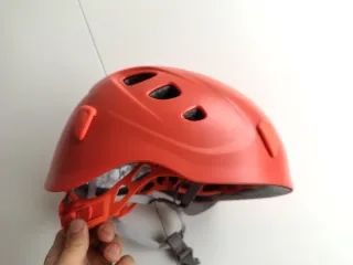 Casco de escalada de la marca Petzl, diseñado para ofrecer protección y comodidad. Talla S-M - Color naranja. - Sistema de ajuste. - Ventilación.
