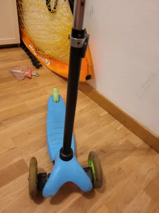 Patinete de tres ruedas en color azul, ideal para los más pequeños. Incluye un casco protector decathlon - Ruedas con luces. - Casco de color amarillo brillante BTWIN 500