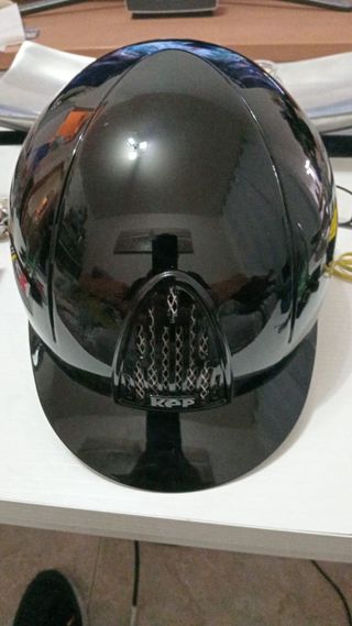 Casco de equitación KEP Italia en color negro. Diseño elegante y moderno. - Exterior brillante. - Ventilación frontal. - Incluye bolsa de transporte. Talla 55