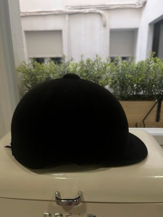 Casco de equitación Fouganza en color negro. 56 cm - Cubierta exterior de terciopelo. - Visera rígida. - Cierre de barbilla ajustable.