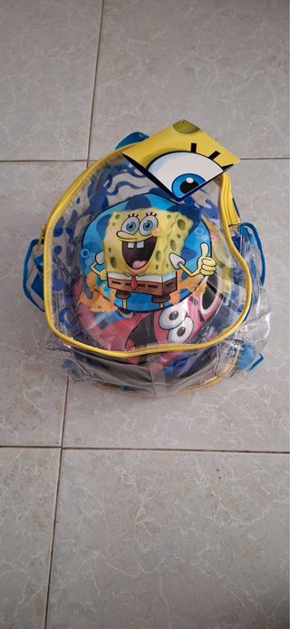 Conjunto de casco y protecciones de Bob Esponja, nuevos a estrenar. El casco y las protecciones presentan un diseño alegre y colorido. - Casco infantil con diseño de Bob Esponja. - Protecciones con dibujos de Bob Esponja. - Perfectos para actividades al aire libre.