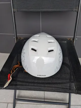 Casco de esquí Head Beacon con diseño moderno y ajustable. Perfecto estado (ver fotos). Vendo por no usar. Regalo funda. - Talla S/XS (52-55 cm) - Sistema de ajuste con rueda micrométrica. - Gancho para sujetar las gafas de ventisca. - Orejeras para evitar el frío. - Diseño blanco con detalles plateados. También vendo esquís, botas y bastones en muy buen estado todo.