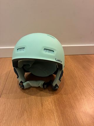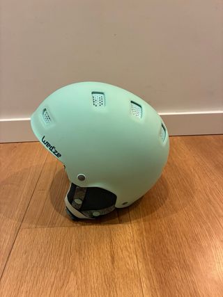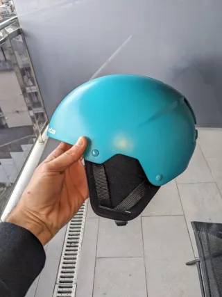 Casco de esquí para niños de la marca Wedze. Diseñado para proteger durante la práctica de deportes de invierno. Está nuevo. - Color azul turquesa. - Sistema de ajuste trasero. - Interior acolchado. - Orejeras para el frío.