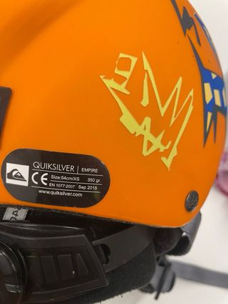 Casco de esquí Quiksilver en color naranja vibrante. Diseñado para protegerte en la montaña. - Marca: Quiksilver - Color: Naranja - Diseño con estampado de dinosaurio - Acolchado interior para mayor comodidad