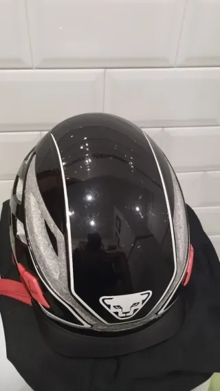 Casco de esquí de travesía en color negro con detalles plateados y blancos. Presenta un diseño aerodinámico y ventilado. -Size 56-62 cm - Logo de pantera en la parte frontal. - Sistema de ajuste trasero. - Acolchado interior, va con gorro