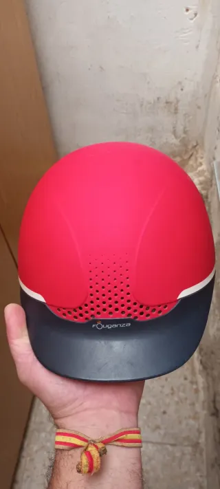 Casco de equitación de la marca fouganza, las tallas estan en las fotos. Usados por una niña. Estan impecables, apenas usados, 20 e cada uno. Si llevas los dos juntos 30e. Caballos poni potros - Color rojo y gris. - Diseño con ventilación. - Visera integrada.