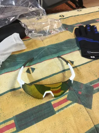 Guantes de ciclismo Westwood Fox con detalles en azul y gel. - Talla M. - Marca Westwood Fox. - Diseño con gel en la palma, Se vende casco y gafas Todo nuevo a estrenar