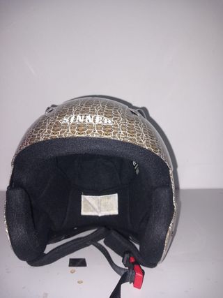 Casco de esquí Sinner con diseño Carpe Diem. Prácticamente nuevo - Color negro con detalles plateados. - Cierre de seguridad. - Interior acolchado.