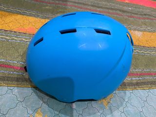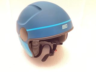 Casco de esquí de color azul claro, diseñado para proteger la cabeza. - Diseño con múltiples ventilaciones. - Superficie exterior lisa.