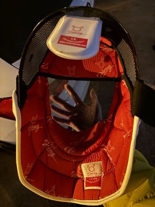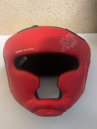 Casco de boxeo infantil de la marca Decathlon, modelo OUTSHOCK. - Color rojo. - Diseño para protección. - Cierre ajustable.