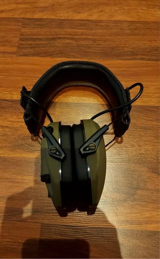 Cascos electrónicos de protección auditiva de la marca Walker's para tiro deportivo. Precio en tienda 96 euros Cascos, Antiruido se puede usar como auriculares están nuevos en su caja, el de la foto son mis cascos que uso. Son una pasada: - Material resistente y de buena calidad - Tiene amplificador de sonido, quiere decir que no hace falta sacarte los cascos para escuchar, tan solo lo activas, solo con subir el volúmen escuchas hasta tu respiración 100% - Tiene clavija para conectar con tu móvil (CABLE JACK incluido), y escuchar tu música. - Diseño táctico en color verde. - Ajuste cómodo para la cabeza. REDUCCIÓN DE RUIDO
