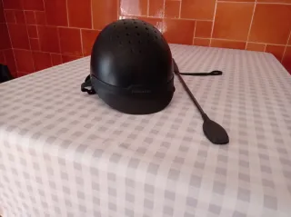 Casco y látigo de equitación