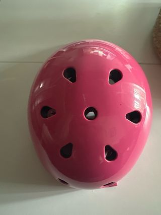 Casco infantil de color rosa, ideal para patinaje, patinete o bicicleta. Las espumas están sin marcas de uso. Pasa por nuevo. - Talla: 52-54 cm. - Diseño con ventilación. - Para bici / ciclismo / esquí patinar niño niña