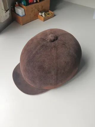 Casco de equitación de terciopelo marrón, talla 60cm. - Material exterior de terciopelo. - Visera integrada.