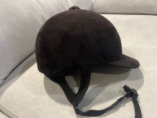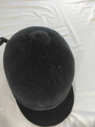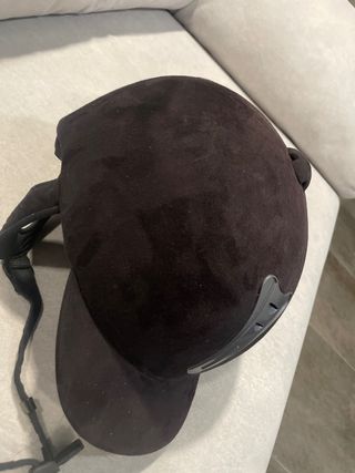 Casco de equitación con acabado en terciopelo. - Color negro. - Cierre de correas ajustable. Perfecto estado, muy poco uso.