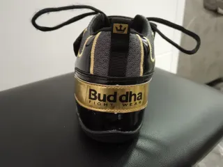 Zapatos de boxeo de la marca Buddha en buen estado. Diseñados para ofrecer comodidad y soporte. - Combinación de colores negro y dorado. - Cierre con velcro y cordones. - Diseño de caña alta.