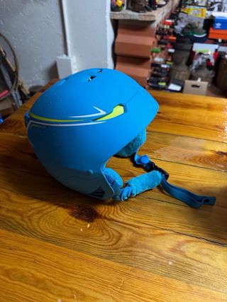 Casco de esquí de color azul, ideal para disfrutar de la nieve con seguridad. Diseñado para ofrecer comodidad y protección. - Marca: Wedze - Color: Azul con detalles en amarillo - Correa de sujeción ajustable - Interior acolchado