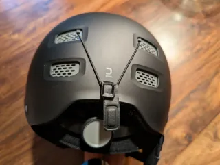 Casco de nieve para niño, talla M, con un rango de ajuste de 55 a 58 cm. Diseñado para ofrecer protección y comodidad. - Usado 5 días. - Color gris oscuro mate. - Múltiples rejillas de ventilación. - Correa de barbilla ajustable con acolchado.