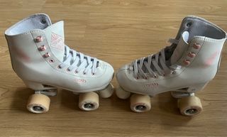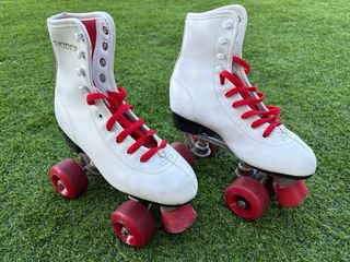Patines clásicos Skater en color blanco con cordones rojos. Ideales para principiantes o para uso recreativo. - Talla 36. - Color blanco con detalles rojos. - En buen estado.