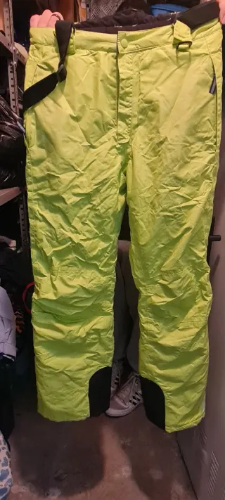 Pantalón de esquí para niño en talla 158/164. - Color verde lima. - Tirantes ajustables. - Cremalleras en los bolsillos.
