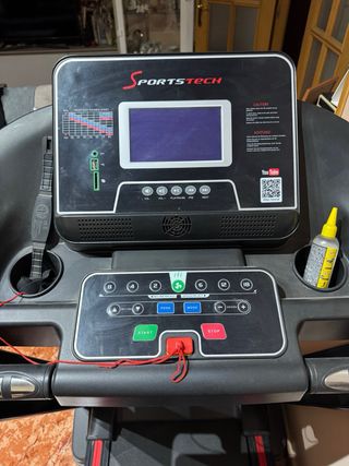 Cinta de correr Sportstech F37 en color negro con detalles en rojo. Se vende por no utilizarla, se compro nueva y se ha utilizado 2 veces. - Pantalla LCD para monitorizar el entrenamiento. - Sistema de plegado para ahorrar espacio. - Incluye dos portavasos. - Destaca su gran calidad, potencia y su silencio durante el uso. - La marca pertenece a una importante firma alemana. - Por motivos personales se dejó de utilizar prácticamente el primer día. Es por este motivo que está como nueva. - Diseño moderno y robusto. - Superficie de carrera amplia. - Estructura estable.