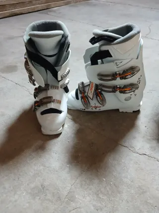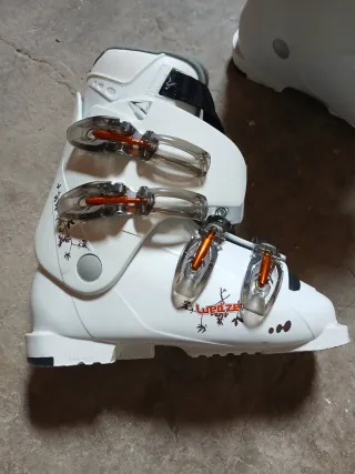 Botas de esquí blancas, ideales para disfrutar de la nieve. - Cierre con hebillas ajustables. - Diseño ergonómico para mayor comodidad. - Interior acolchado. - Talla 26 equivale a un 40/41 - Con bolsa para llevarlas