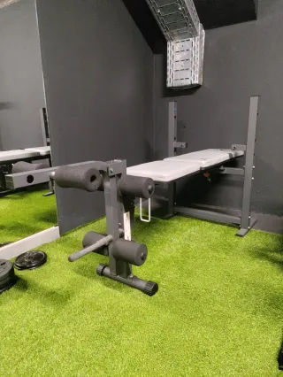 Banco de ejercicios para trabajar cuádriceps y femorales. Ideal para complementar tu rutina de entrenamiento. - Estructura metálica gris. - Acolchado en gris claro. - Rodillos para extensión de piernas. - Funciona con discos. Sin envío