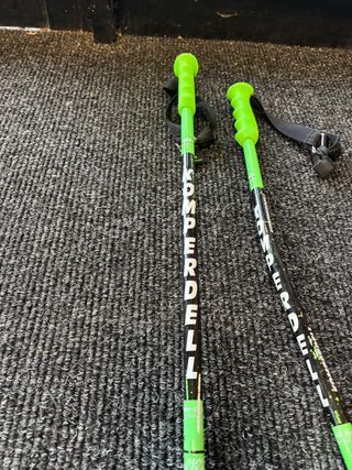 Palos de esquí KOMPERDELL para competición. - Color verde lima. - Empuñaduras ergonómicas. - Correas de sujeción negras.