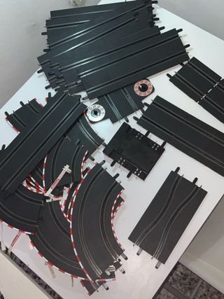 Set de pistas de Scalextric Carrera Go. Incluye varias piezas para construir tu circuito. Lo q no tengo son los mandos radiocontrol. Por lo demas esta completo y de seguro que funciona 8 rectas 6 cuadros rectos. 7 curvas largas 4 curvamedianas y 2 curva