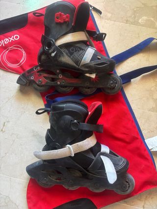 Se venden patines evolutivos Oxelo usados pero en buen estado general, talla 34-36. Incluyen bolsa de transporte con ventilación.