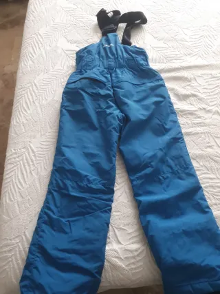 Mono de esquí para niño o niña en color azul. Ideal para disfrutar de la nieve. Talla 128cm 7-8 años aprox. - Tirantes ajustables. - Bolsillo con cremallera en la parte delantera.