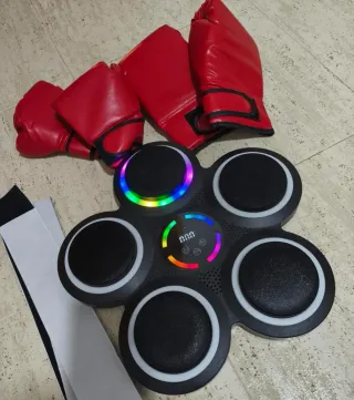 Vendo máquina de boxeo musical para pared, ideal para adultos y niños. Perfecta para entrenar reflejos, coordinación y hacer ejercicio de forma divertida en casa. ES A ESTRENAR * Características: -Conexión Bluetooth para entrenar al ritmo de tu música. -Luces LED multicolor que marcan los golpes. -9 modos de velocidad y entrenamiento. -Incluye guantes de boxeo (adulto y niño) -Fácil instalación en pared -Pantalla digital con contador -Apta para principiantes y entrenamiento fitness * Ideal para: Ejercicio en casa Entrenamiento de boxeo Niños (juego activo) y adultos Regalo original
