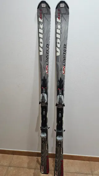 Esquís Volkl AC1 Unlimited LT con fijaciones. - Modelo: AC1 Unlimited LT - Marca: Volkl - Diseño: Doble Grip LT - fijaciones Marker LTX motion: - ligereza y comodidad - ajuste sencillo - Din hasta 10 Necesitan mantenimiento, como se ve en las fotos mas en detalle, los cantos tienen oxido.