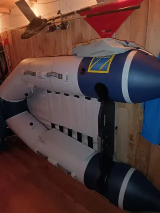 Barca hinchable Zodiac de 2.60 metros de eslora. Incluye remos. Hay que encolar la parte del suelo de dentro, de hay el precio