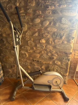 Bicicleta elíptica para entrenar en casa. - Estructura metálica. - Pedales antideslizantes. - 2 tipos de manillares con agarres. - Rueda de inercia. - Pantalla con Km/h, Km, tiempo, pulsaciones corazón y calorías quemadas.