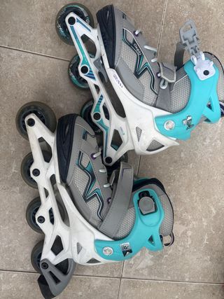 Patines en línea Bladerunner con diseño ajustable. Usados 2 veces. - Ruedas de 72mm. - Cierre de velcro y hebilla.