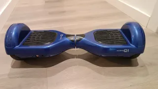 Hoverboard de color azul brillante, modelo Q1. Diseñado para un desplazamiento divertido y ágil. - Carcasa de plástico resistente. - Plataformas antideslizantes. - Ruedas con banda de rodadura.