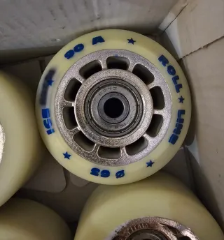 Set de cuatro ruedas para patines de xou o danza. Marca RollLine. Modelo Ice. Dureza 90A. Diametro 63 Rodamientos incluidos