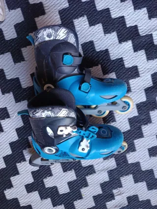 Patines en línea de color azul, ideales para iniciarse en el patinaje. - Cierre de velcro y hebilla. - Ruedas de poliuretano. - Diseño con detalles gráficos.