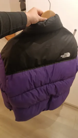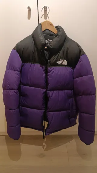 Chaqueta de invierno The North Face con un diseño bicolor. Talla L.. Nueva totalmente. Comprada por equivocación en la talla. - Parte superior en color negro. - Parte inferior en color púrpura. - Cuello alto. - Cierre de cremallera.