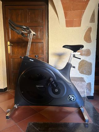 Bicicleta estática de la marca Body Bike, modelo Supreme. Diseñada para entrenamientos en interiores. - Color negro. - Estructura robusta. - Sillín ajustable.