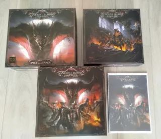 Edición en castellano - Ancient Blood Vampire Hunters. - Ancient Blood: Spike and Fangs. - Ancient Blood: Claustro Impio. - Manual de reglas. - Incluye actualización de reglas en castellano impresas. -No separo expansiones